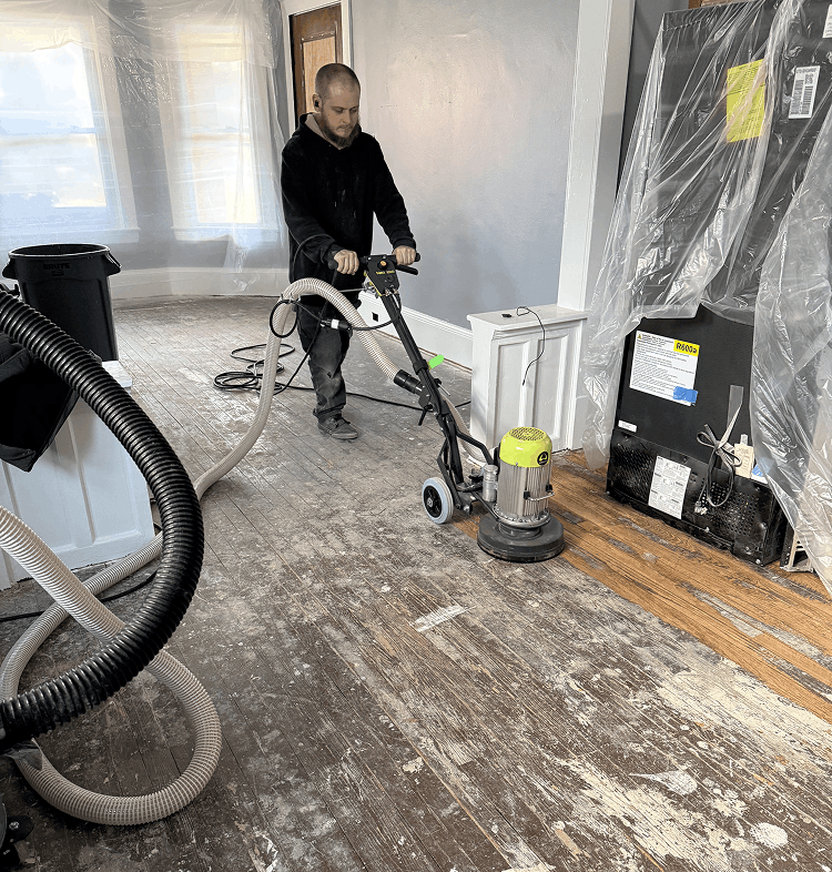 Floor prep, also known as surface prep, can be as simple as removing any nails, glue, and debris from the floor. Alternatively, floor prep can be rather intensive. Depending on if the new floor will be installed on a wood or concrete subfloor, prep varies. For example, surface prep can include building up the subfloor, sanding seams, pouring leveling, and more. Upon consultation, Floorscapes can help determine what's to come.